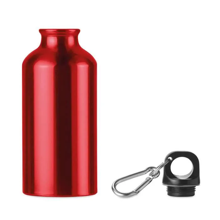 Aluminiumflaska 400ml är en dricksflaska i aluminium. Flaskan har en skruvkork i plast med en karbinhake.
