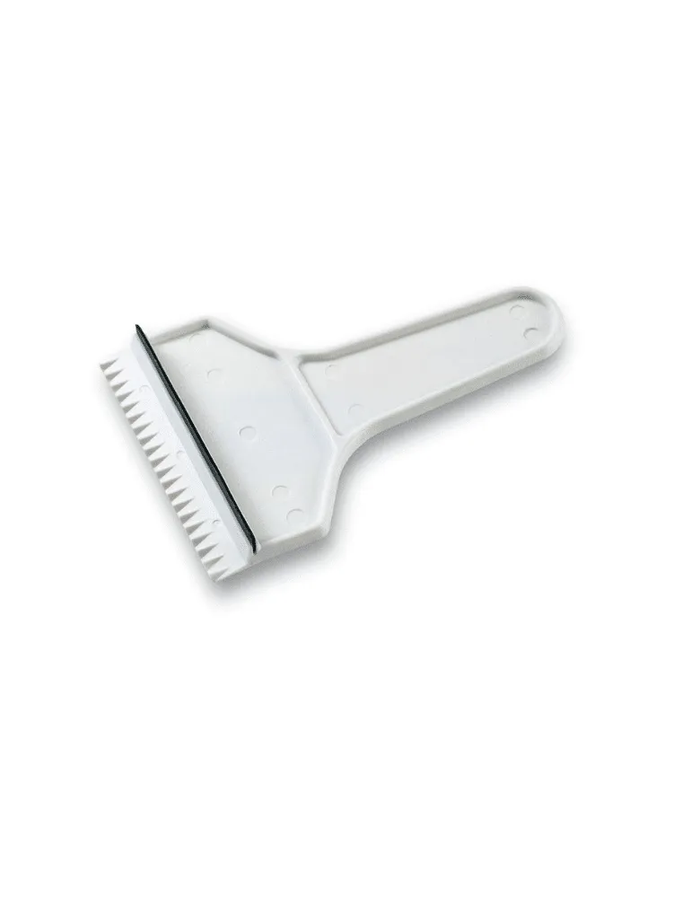 Detta är en isskrapa med handtag. Ena sidan av skrapan är gjord för hård is och den andra för vattendroppar.