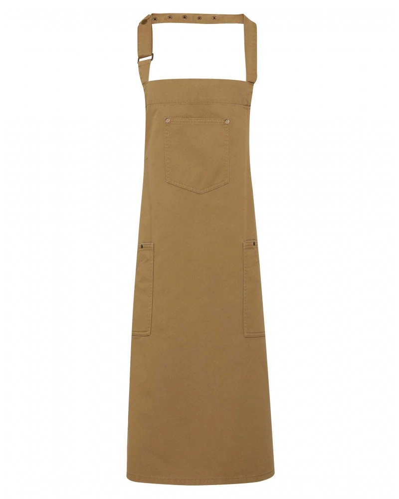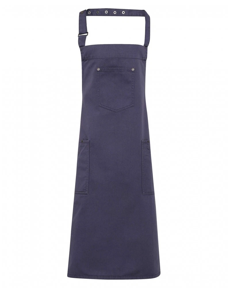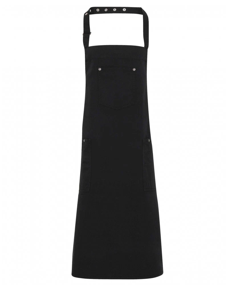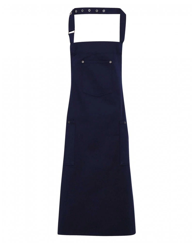 Detta snygga förklädet är utformat med en klassisk chino-stil accenter för en cool och edgy enhetlig lösning för barer och resturanger. Det finns tre funktionella fickor för design och användarvänlighet. Förklädet har ett justerbart spänne i nacken så att man kan justera höjden på förklädet. Det finns i en one size modell.