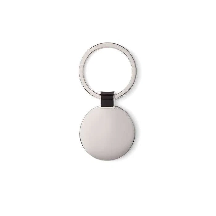 Detta är en rund nyckelring i kromad metall, perfekt för tryck!