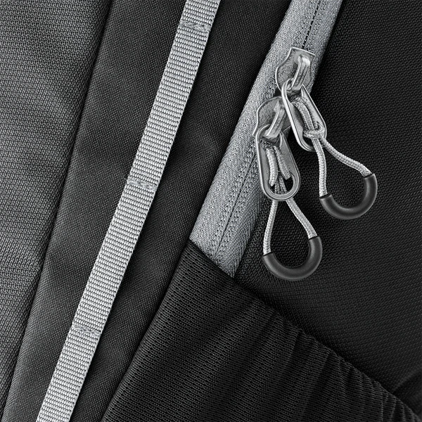 Detta är en praktisk ryggsäck med reflekterande detaljer. Ryggsäcken har en vadderad baksida, sidofickor i mesh-material och ett fack för laptop. Finns tillgänglig i svart och marinblå.