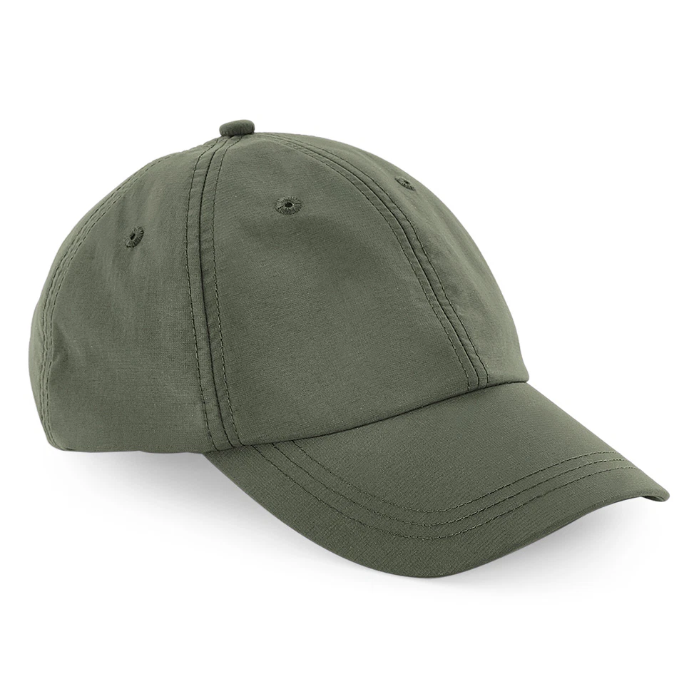 Beechfield Outdoor 6-Panel Cap är en tålig och funktionell keps framtagen för aktiva utomhusförhållanden. Den har en femvävstäckning bestående av 100% nylon som är både vattentät och andas – perfekt vid regn, vind eller ökad fysisk aktivitet. Svettbandet i 100% polyester Coolmax®-material transporterar fukt bort från huden och håller dig torr och bekväm. Kepsens design omfattar en klassisk 6-panelkonstruktion med för-formad skärm och klicklås baktill som ger en stabil och anpassningsbar passform. Den är lätt i vikt – cirka 65 gram – vilket gör den smidig att bära under långa dagar och enkel att förvara när den inte används.